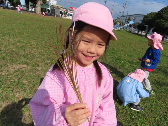 すすきを手に、3匹のヤギ🐐の歌を歌いながらお散歩していた ななちゃん。