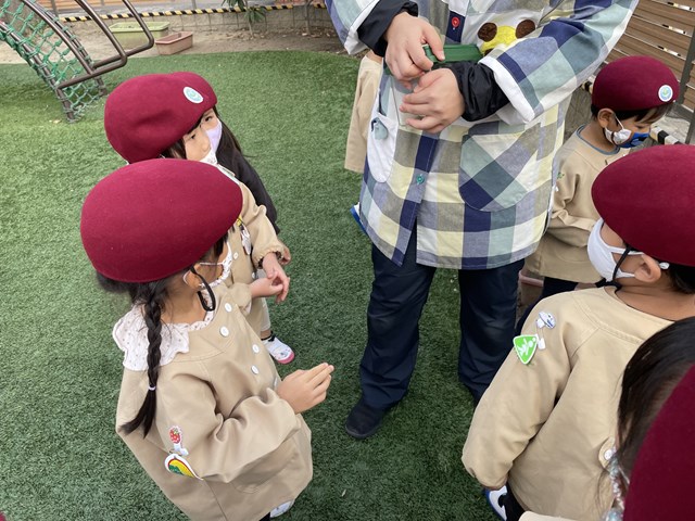 見たことのない虫を見つけたら、すぐに園長先生に見てもらいたくて駆け寄る子ども達。