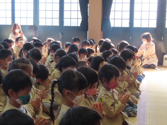 子ども達は、今日は正座に挑戦です。もしかしたら、慣れない子は姿勢が崩れてしまうかもしれないけれど、これも経験ですね😊