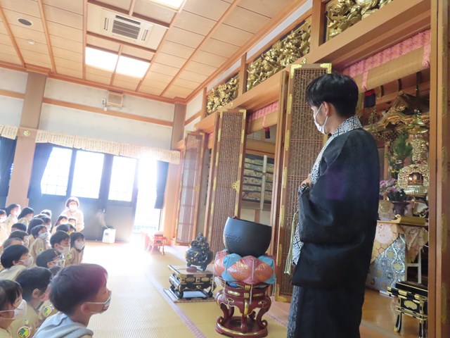 いつもは「えんちょうせんせい!」だけれど、この日はこのお寺のご住職です。