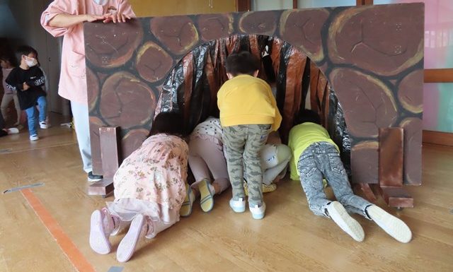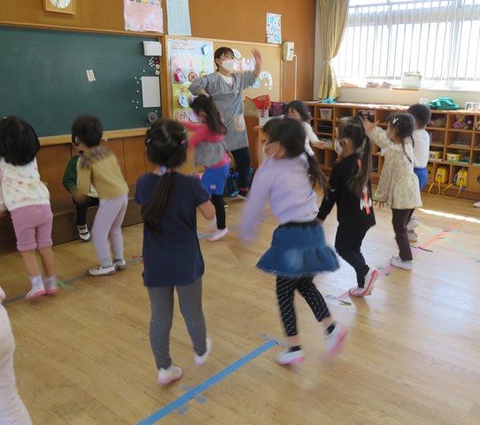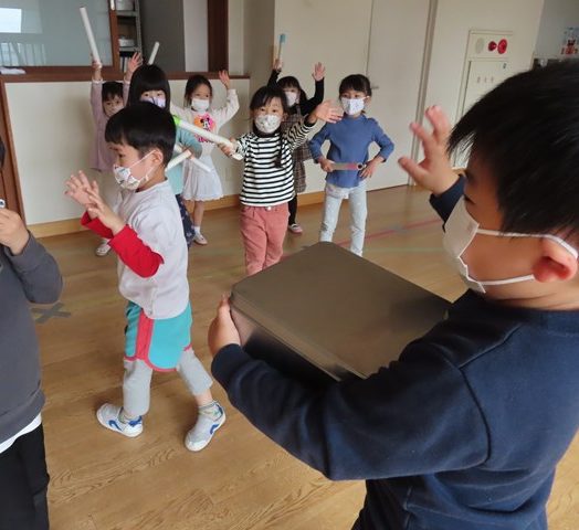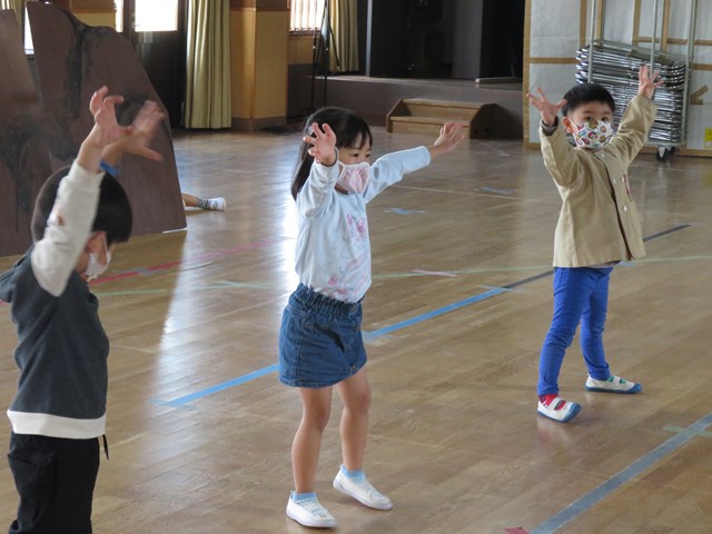 以前にご紹介した年中組のオペレッタの練習風景です。明日の見どころにもなりますのでご紹介しますね。
