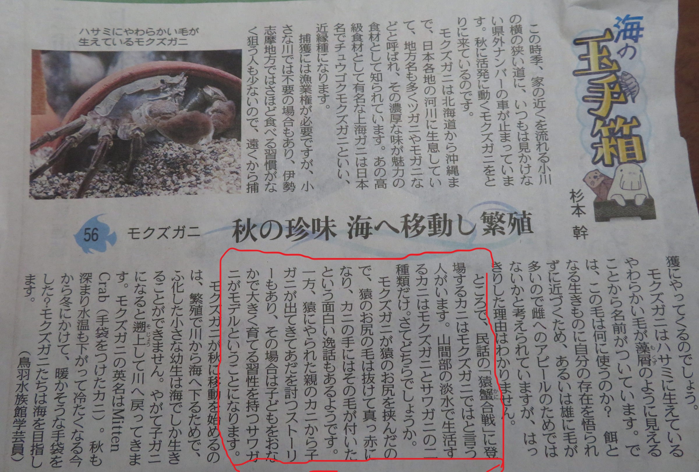 幼稚園でみんなで育てているモクズガニ(くじらバス運転手の前鶴さんがいつも捕ってきてくださいます)が、さるかに合戦に出てくるカニさんのモデルなのかも!というのです。子ども達は大喜び😊