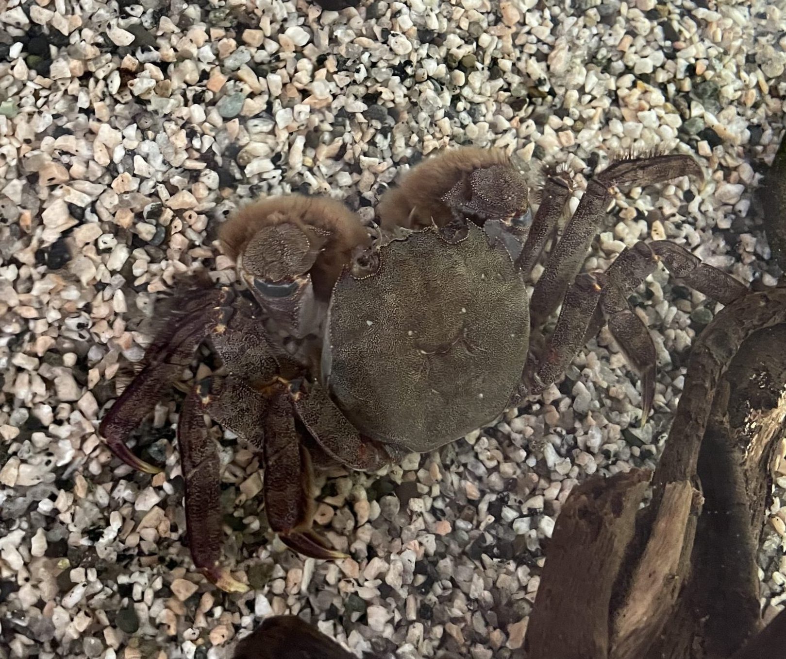ふわふわ手袋のはさみを持っている、このモクズガニは、子ども達に大人気。