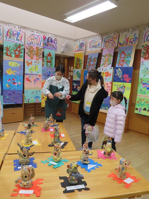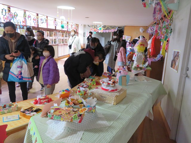 年長組のオープンスペースでは、まるで大みそかのショッピングモールのように、絶え間なくお客様たちが作品を観に来てくださいました😊