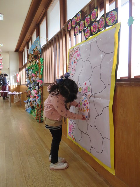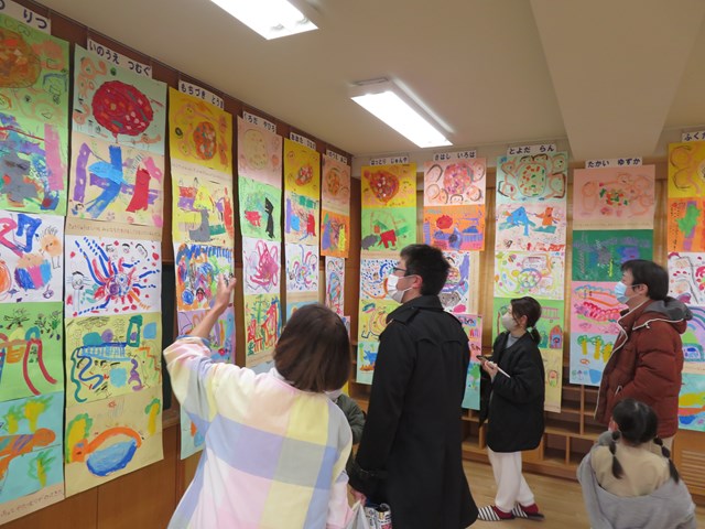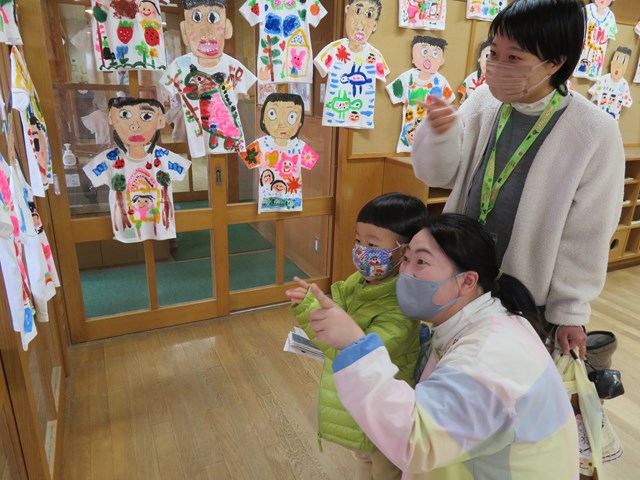 さて、当日。次々に家族総出で来園されるなか、子ども達はどの子もうきうきした様子。お家の皆さんに、一生懸命描いた作品をみてもらえるのが、楽しみなのでしょう😊