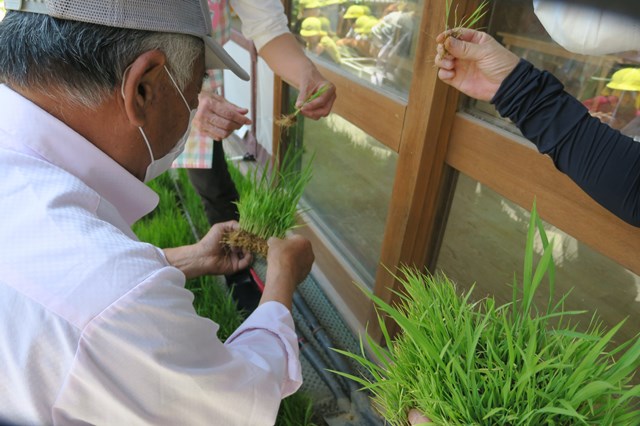 ・草抜きをしたり、お米を取り外しやすいように稲のサイズを切り分けてくれた先生たち