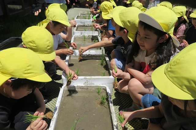 苗植えの仕方を、JAの小関さんに教えて頂きながら、子ども達は丁寧に苗植えをしていきました。