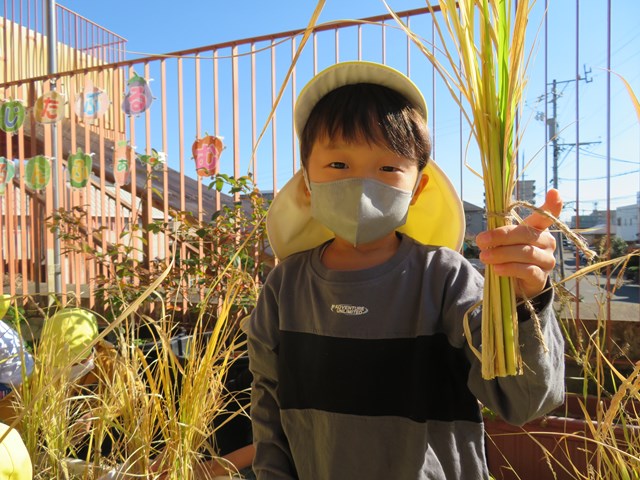 「お米が実った!!」「早く食べてみたい!!」と大喜びの子ども達。