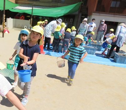 暑い中、2階のベランダ「るんるんファーム」まで、みんなで何度も運んだね。