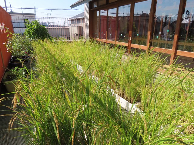 9月末頃には、黄金色の穂がたくさん実り、すずしい風に揺られている秋らしい風景となりました。