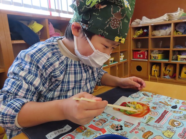 さすが年長組さん。スプーンでくるくると拡げるのがとっても上手👏