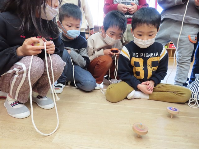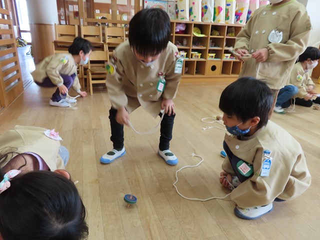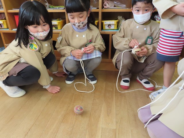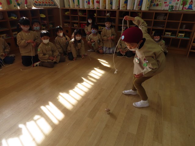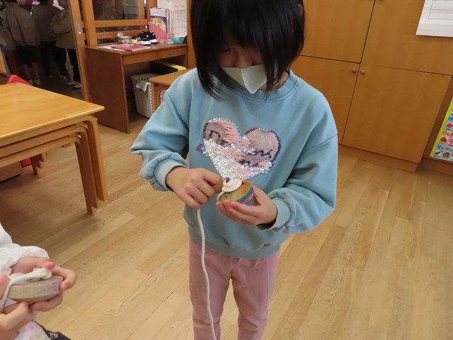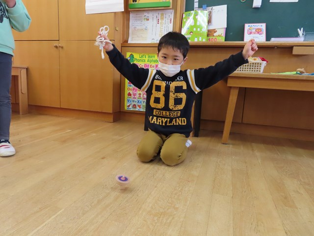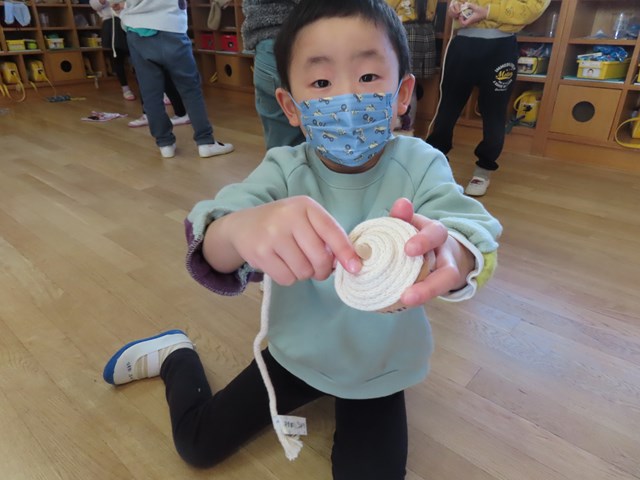 ふじ組では、はじめはりょう君一人だけ、とっても上手に回すことが出来たので、みんなが「すごい!」「どうやってやるの??」と大盛り上がりでした。