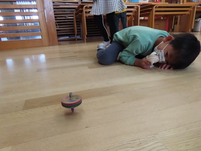 くるくる・・・といつまでも長いこと回っているコマに、釘付けになっている子も。