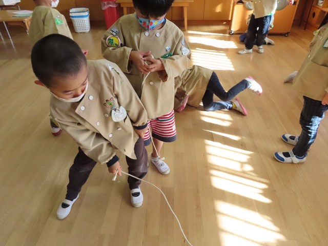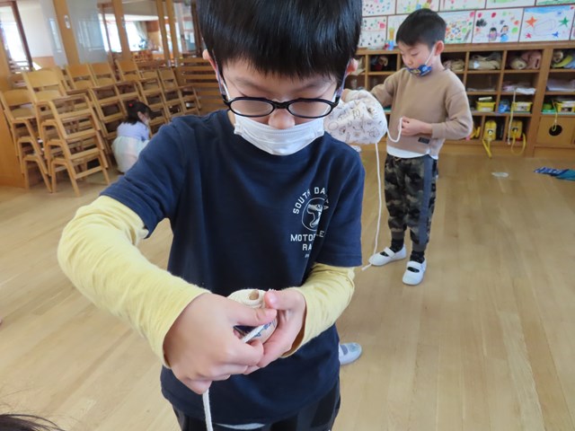 でも、なかなか難しくて、「どうやって紐を巻くの?すぐにほどけちゃう!」と、みんなは悪戦苦闘💦
