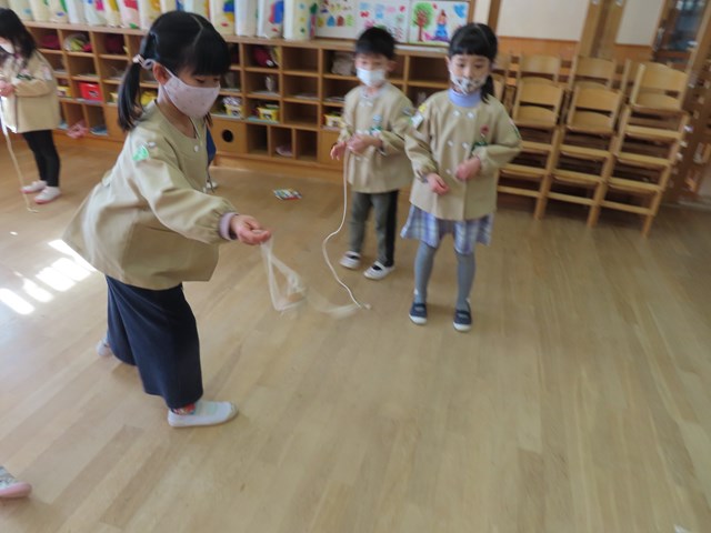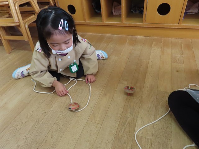 なかなか回すことが出来なくてちょっぴり悔しかったお友達もいましたが「もっとやりたい!」「上手に回せるようになりたいな」と、子ども達はとっても前向きです。