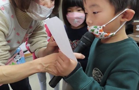 年中組はいま、わかば放送局のアナウンサーに挑戦しています。