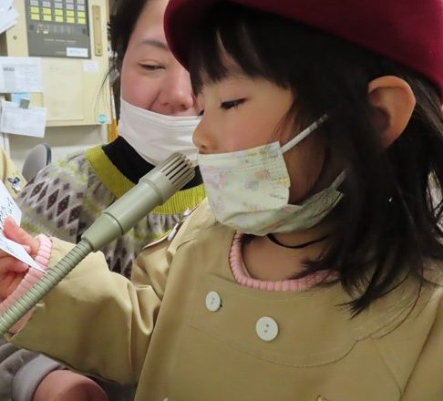 教務課の中に入るなり、「あ~緊張するよ。」「どきどきするなぁ」とちょっぴり心配そうな子もいますが、マイクの前に立つと、別人のように大きな声でアナウンスしていますよ!