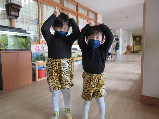 兄弟そろっての、とってもかわいい鬼さんが登場!りくと君とゆうと君が、こんなかわいい鬼に変身してきてくれたよ😲