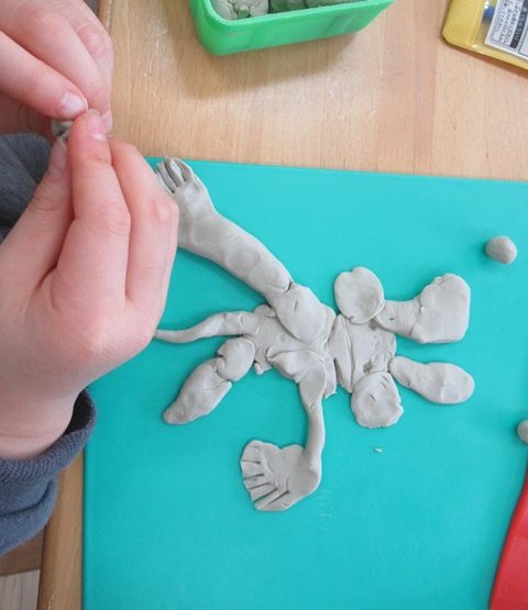 豆まきが終わった後には、粘土で豆まきの時の鬼を作っていた子を発見!