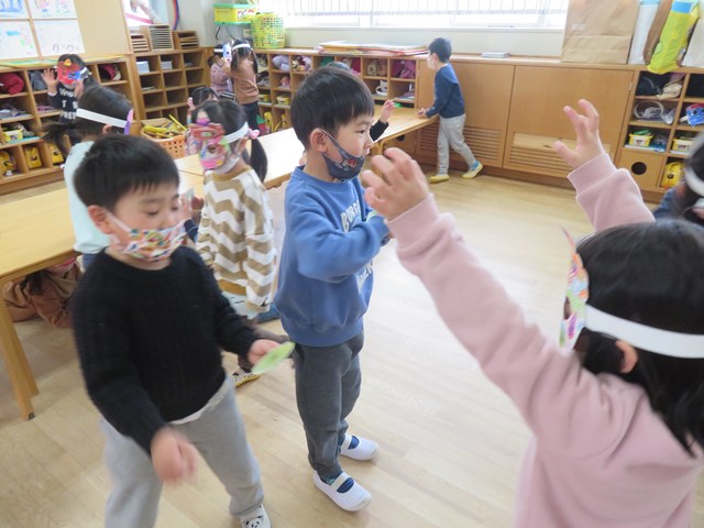 お面を被ると、自然に鬼になりきってしまう姿がとっても微笑ましく、「さすが子ども達!」と感心してしまいます。