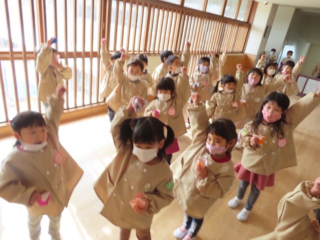 年少組さんも鬼が来るまでは、張り切って「がんばるぞー!」「おーっ!!」