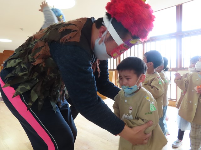 やっぱり怖くて涙が出ちゃう子も。泣かせてしまった赤鬼さんがおもわず駆け寄ると、もっともっと大泣きに・・・😢💦