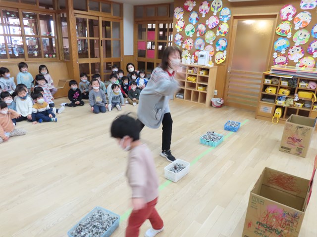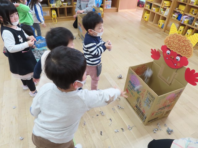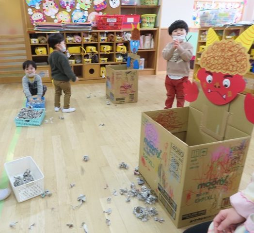 2月3日(金)、満三歳児クラスのちゅうりっぷ組さんも、節分を楽しみました😊