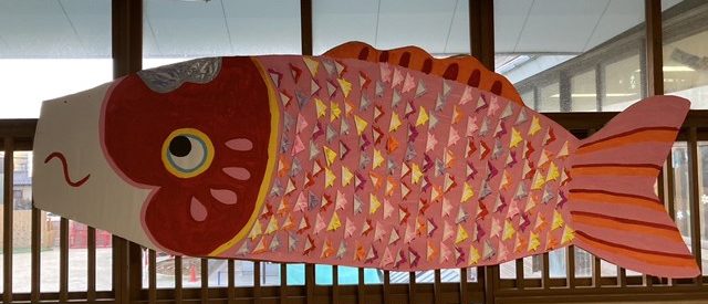 そして、子ども達が作ったBigこいのぼりが悠々と泳ぐ、年長組では・・・
