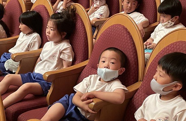 園長先生は続けて、サラマンカホールに聳え立つパイプオルガンの由来・・・「鳴かずのパイプオルガン」を岐阜県の辻博さんが「ぼくが修理してあげよう」と8か月もの期間をかけて大修理をして、このサラマンカホールに運んできてくださったお話などを聞かせて下さり、子ども達は興味を持って聞いていましたよ。