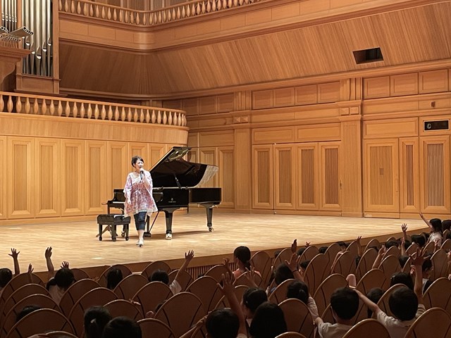 今回演奏して下さる西村由紀江さんは、小さい頃とってもシャイな女の子で、ピアノが一番の友達だったこと、また、西村さんにとって一番小さなお客さんはみんなであることを知った子ども達。
