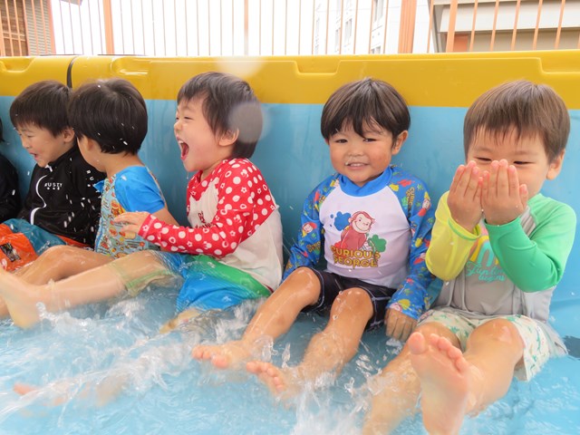 きもちいいね~!今年から再開したスイミングにもいっているせいか、余裕な表情の年長組さんたち。