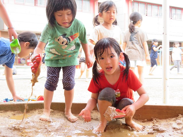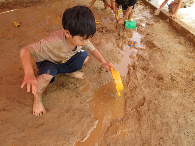 泥んこ遊びは、子ども達の五感を大いに刺激する遊びです。