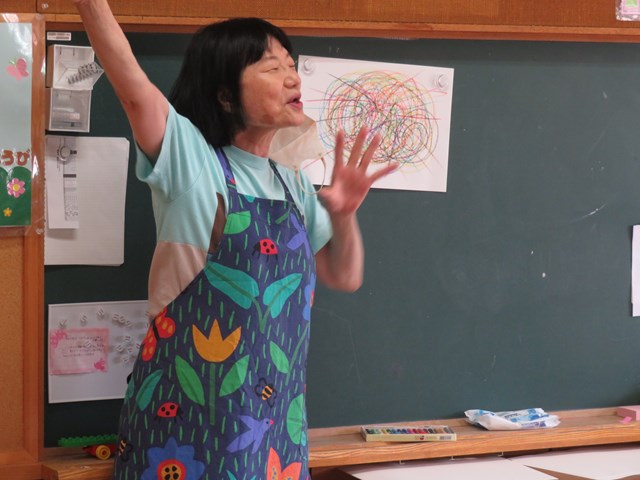 「一つの色だけじゃなくで、みんなが好きな色、描いてみたい色を何本でもかさねていいよ」