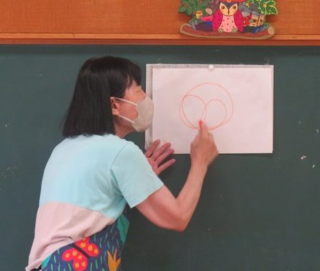早速、クレヨンのふたを下に重ねるやり方も丁寧に教えてくださるおさとう先生。