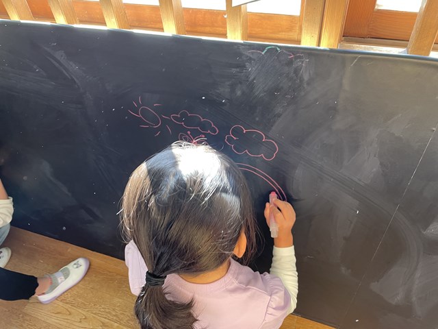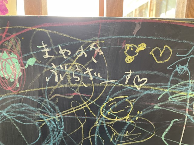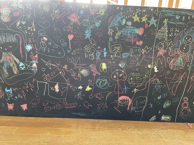 そう、教室のチョークは子ども達は使えない約束になっているけど、このからふるらんどでは、好きな時に好きなだけチョークで絵を描いても大丈夫なんです💗