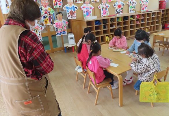 子ども達にとても温かく優しく声をかけて下さるお客様に、「おはようございます!」と元気いっぱいにご挨拶。「どこからきたのかな?」と興味津々でしたよ。