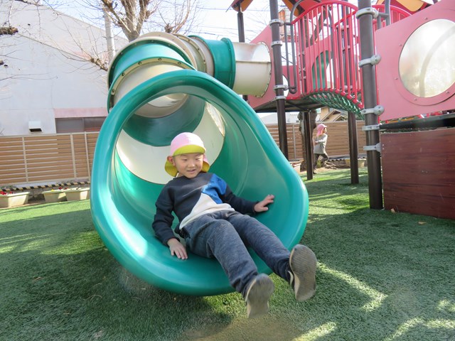 その後、芝生を駆け上がり、滑り台はら~くらく😊