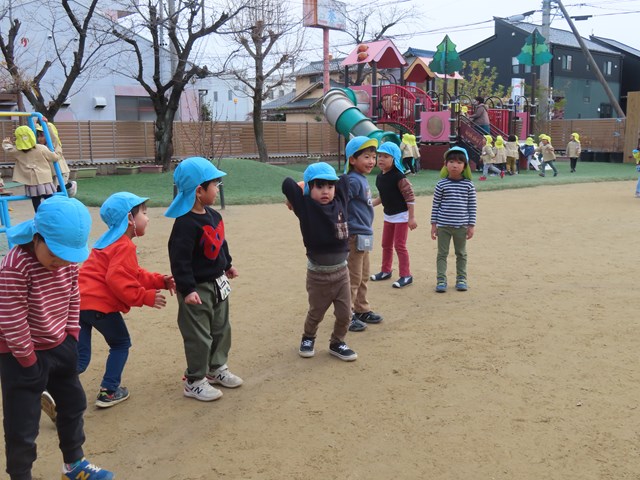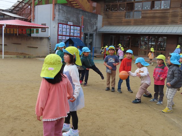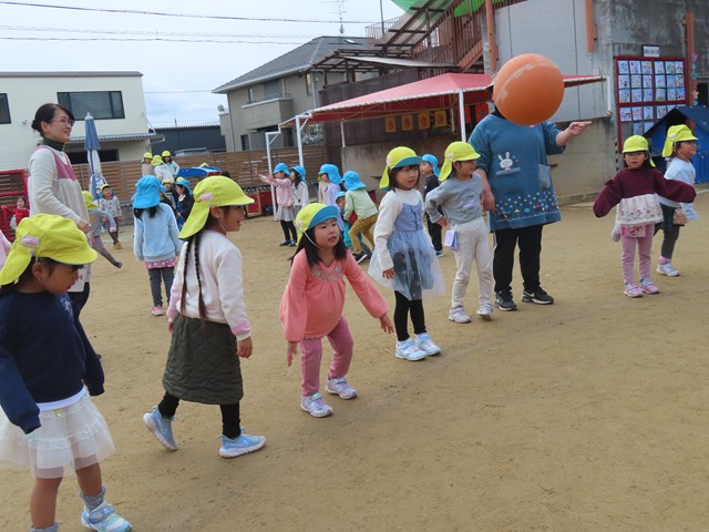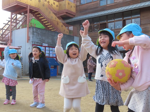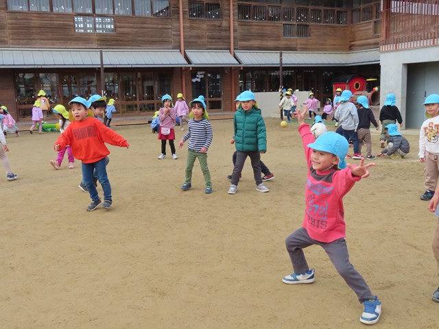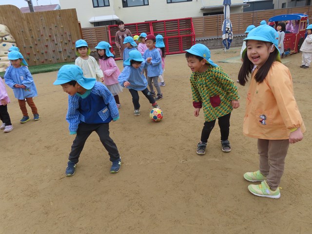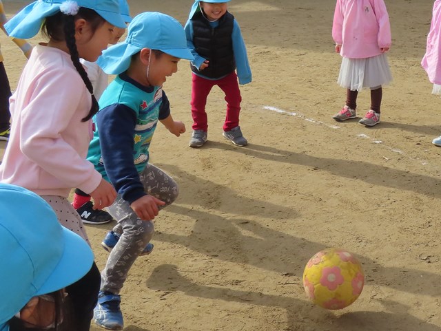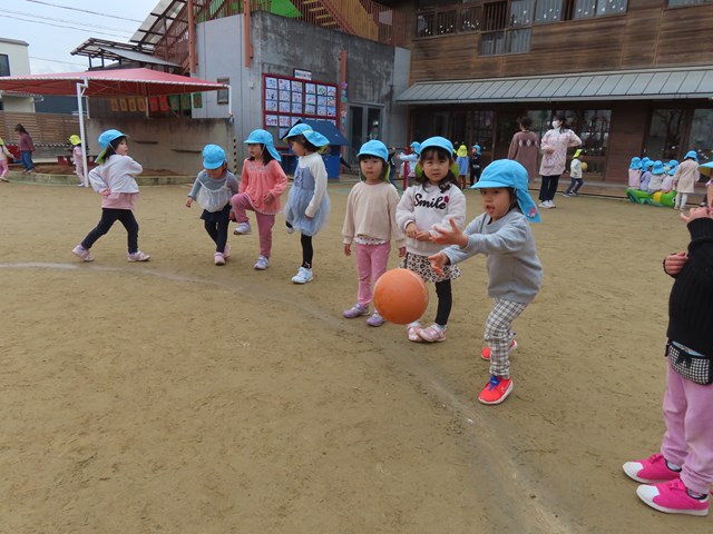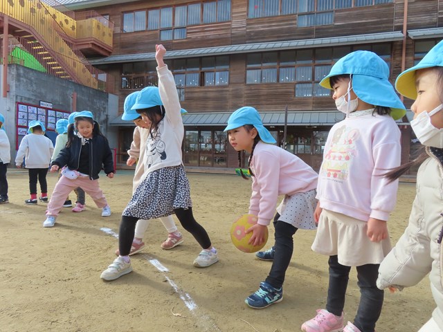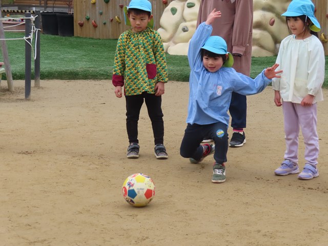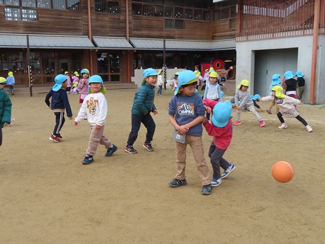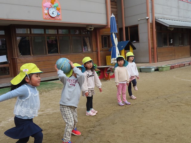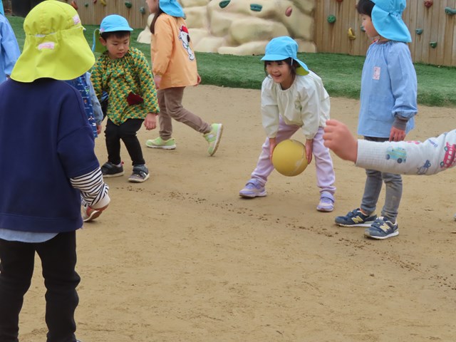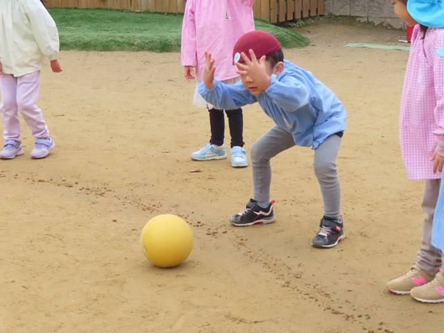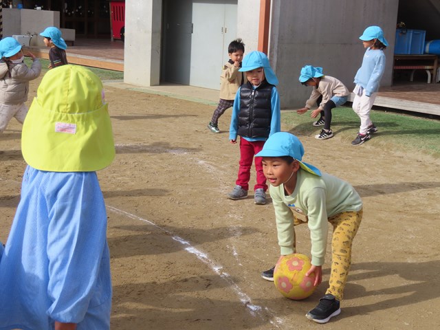 さて、年長組さんがドッヂボールをしている姿を、いつもうらやましそうに見ていた年中組の子ども達。