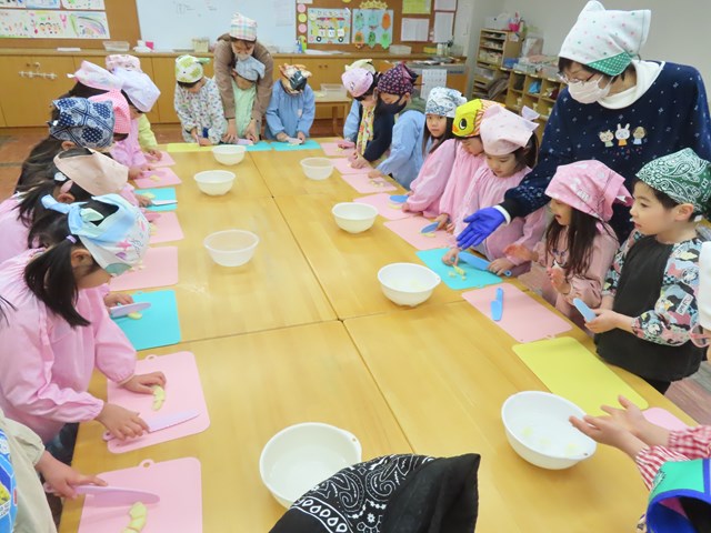 1月11日(木)、年長組のみんなもクッキングを楽しみました。