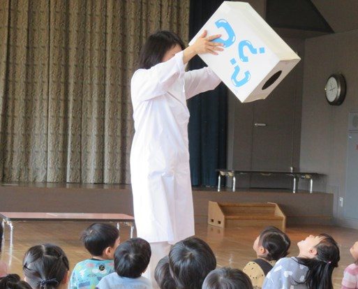 他にも空気砲を使って、かいじゅう倒しゲームや、『はてな?ボックス』を使った手品など・・・