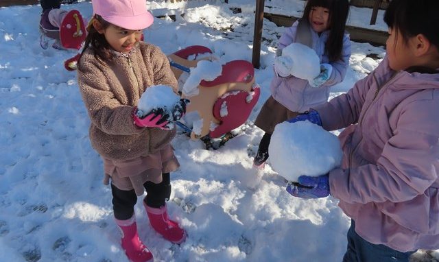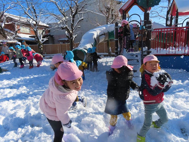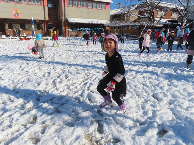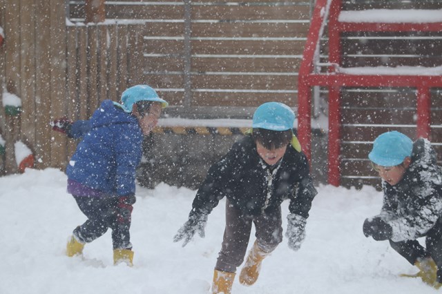 しんしんと降り続ける雪たちもびっくりするくらいの、大きな歓声が園庭に響き渡っていましたよ。