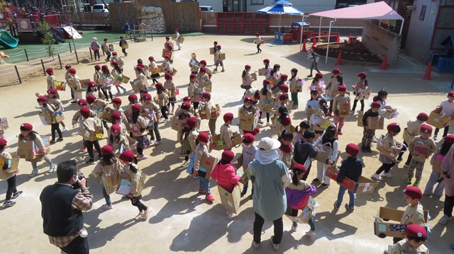 バイキングのあとは、お部屋で休憩し、その後、全員で園庭にでかけた子どもたち。