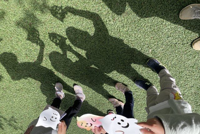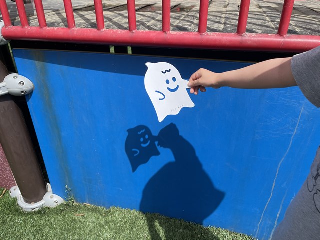 この日、年長組さんは、絵本の付録で影遊びを楽しんでいましたよ。