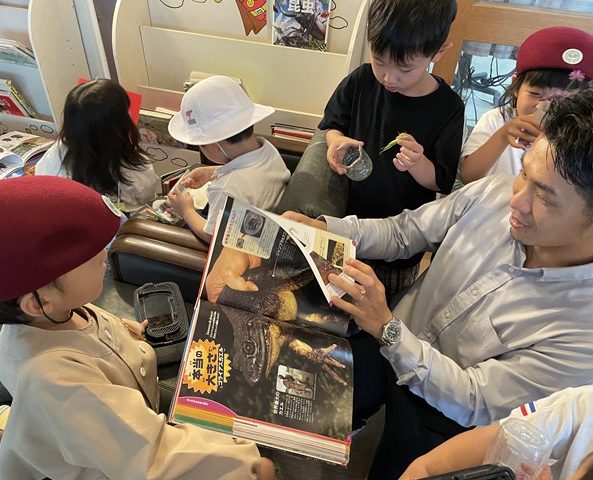 『ふしぎ発見コーナー』で早速、園長先生と一緒に図鑑をみて調べていましたよ。園長先生もとっても楽しそう😊