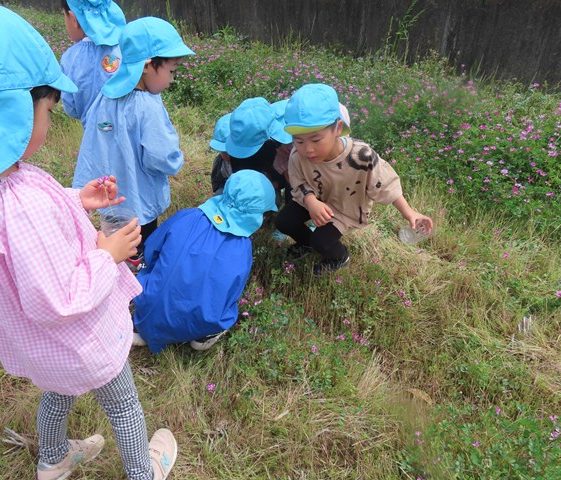 田んぼだけではなく、幼稚園の園庭でも、生き物の命がキラキラ輝く季節です。