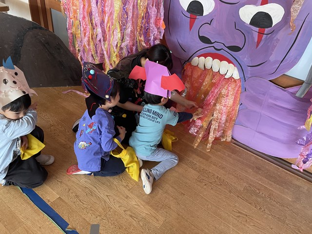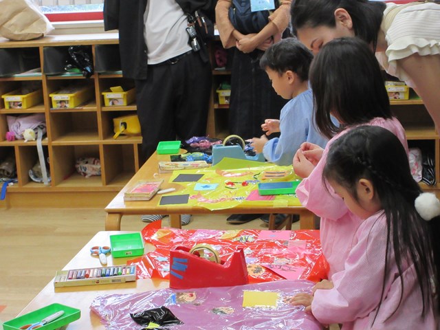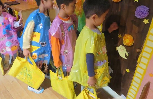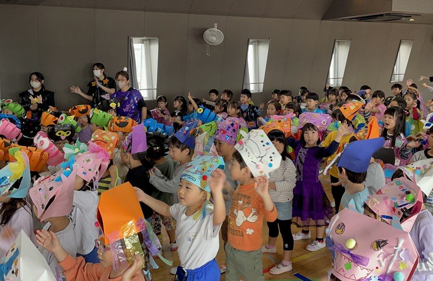10月19日の保育参観日では、ご家族に見守られながら子ども達がハロウィンの帽子や衣装を手作りしました。