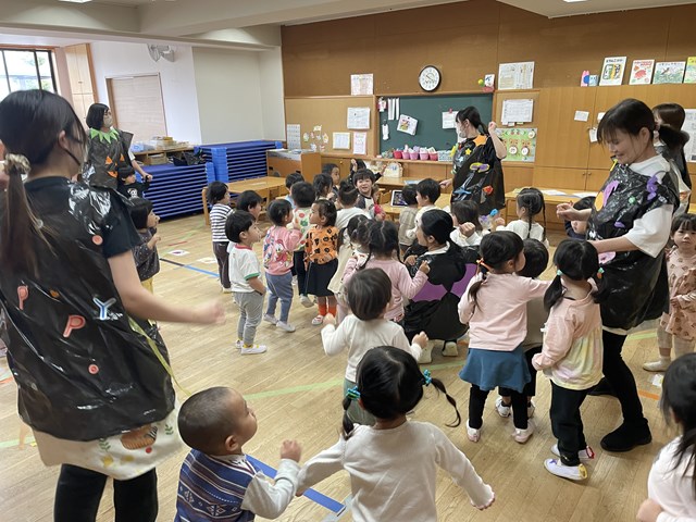 『ハロウィンってなあに?』の由来を動画で観たあとは、大好きなダンスをみんなで楽しみました。