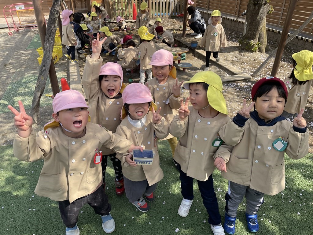 こんな風に、子ども達にもっと大好きになってもらえるよう、年々進化し続ける園庭にみんなが集まり、進級式を行いました