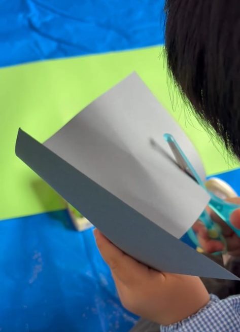 さあ、みんなも自分の選んだ色画用紙をハサミで切って、フライパンを作ってみようね。