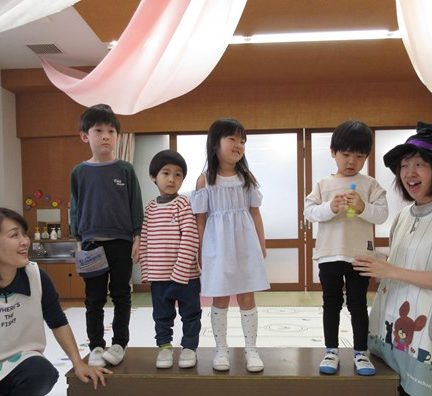 どきどきしながら、まほうのへやにやってきた4月生まれのこどもたち。